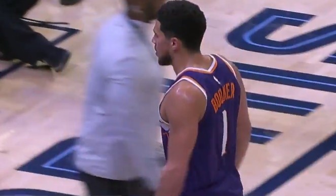 足球投注-真横!布克半场前最后一攻 突破强攻转身中投压哨弹入篮筐!